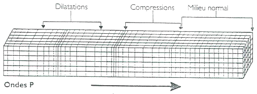 ondes longitudinales. Le déplacement du sol qui accompagne leur passage se
