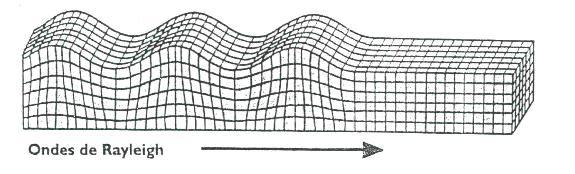 - L'onde de Rayleight R: le déplacment des particules est à la fois
