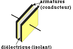 Un condensateur est constitué de deux armatures conductrices séparées par un isolant (ou diélectrique).