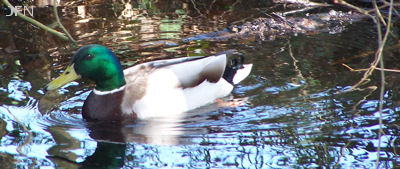 Le canard se déplace de droite à gauche. Pour un observateur situé devant la longueur d'onde observée λ (distance entre 2 crètes) est plus petite que celle observée à l'arrière du canard. Or λ= c.T = c/ f et f = c/λ. Donc la fréquence de l'onde devant le canard est plus grande que celle observée derrière . |