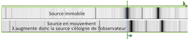 Dans le cas de source lumineuses comme des étoiles ou des galaxies, le décalage Doppler se traduit par un déplacement des raies d'absorption du spectre.