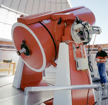 Le télescope Leonard EULER construit par l'Observatoire de Genève, se trouve à l'Observatoire Européen Austral (ESO) au Chili, sur le site de La Silla, à 2400 m d'altitude.