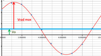 | b- Modélisation : En utilisant les barres de défilement, fixer V0, Vr max T et le déphase φ pour que le modèle corresponde le mieux aux points de mesures. | |||