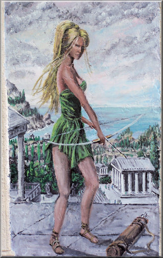L'arc en ivoire avec lequel elle s'apprête à tirer.
