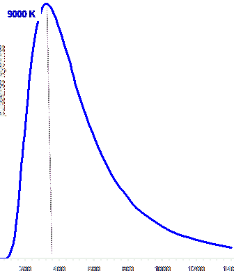- Un corps noir à 9000K apparaîtra bleuté car il emet plus de puissance dans la partie bleu du spectre