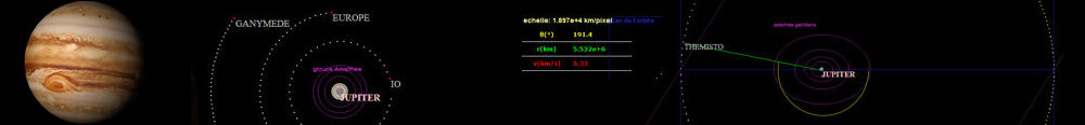 | Les satellites de JUPITER | : les satellites galiléens (Io, Europe, Ganymède et Callisto) à orbite quasi-circulaire et un autre satellite (Thémisto) à orbite elliptique. |