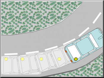 Animation : Une voiture arrive dans un virage...