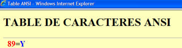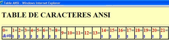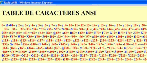 <h1>TABLE DE CARACTERES ANSI</h1>